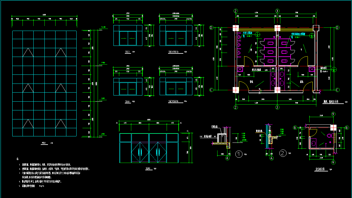现代大型工厂综合cad图纸,cad办公竣工图下载:图纸包含平面图、立面图、隔墙平面图、平面布局图、节点大样图等,作图规范,内容详实,可供参考。