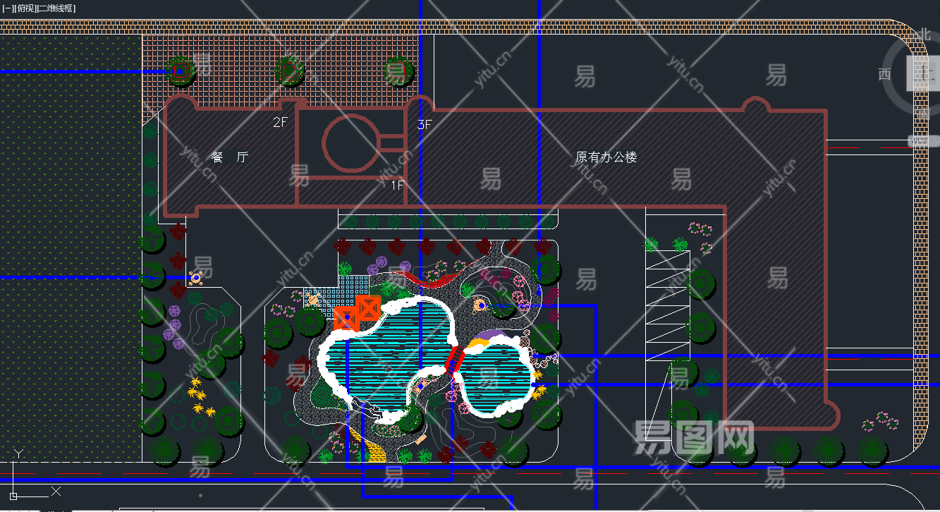 当前的位置:首页 > 室内CAD图纸 > cad > 工装图纸 > 办公空间 > 办公楼景观设计平面图