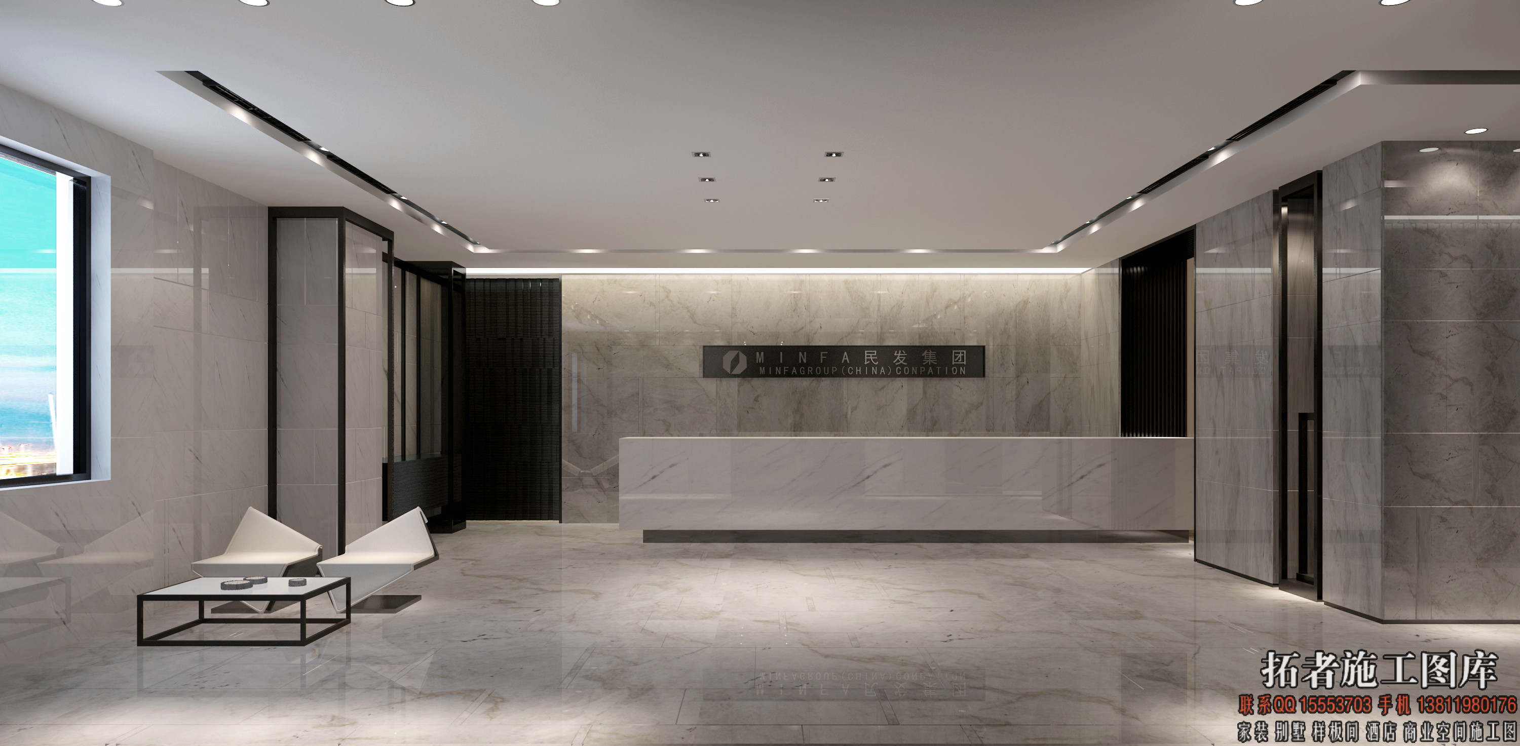 资料为:某现代风格办公施工图及效果图CAD图纸