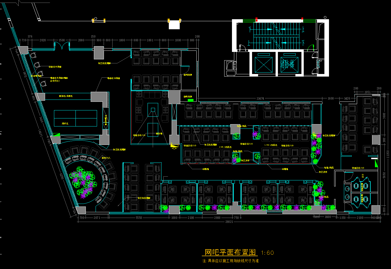 全套炫彩网吧CAD设计图,网吧CAD施工图纸下载