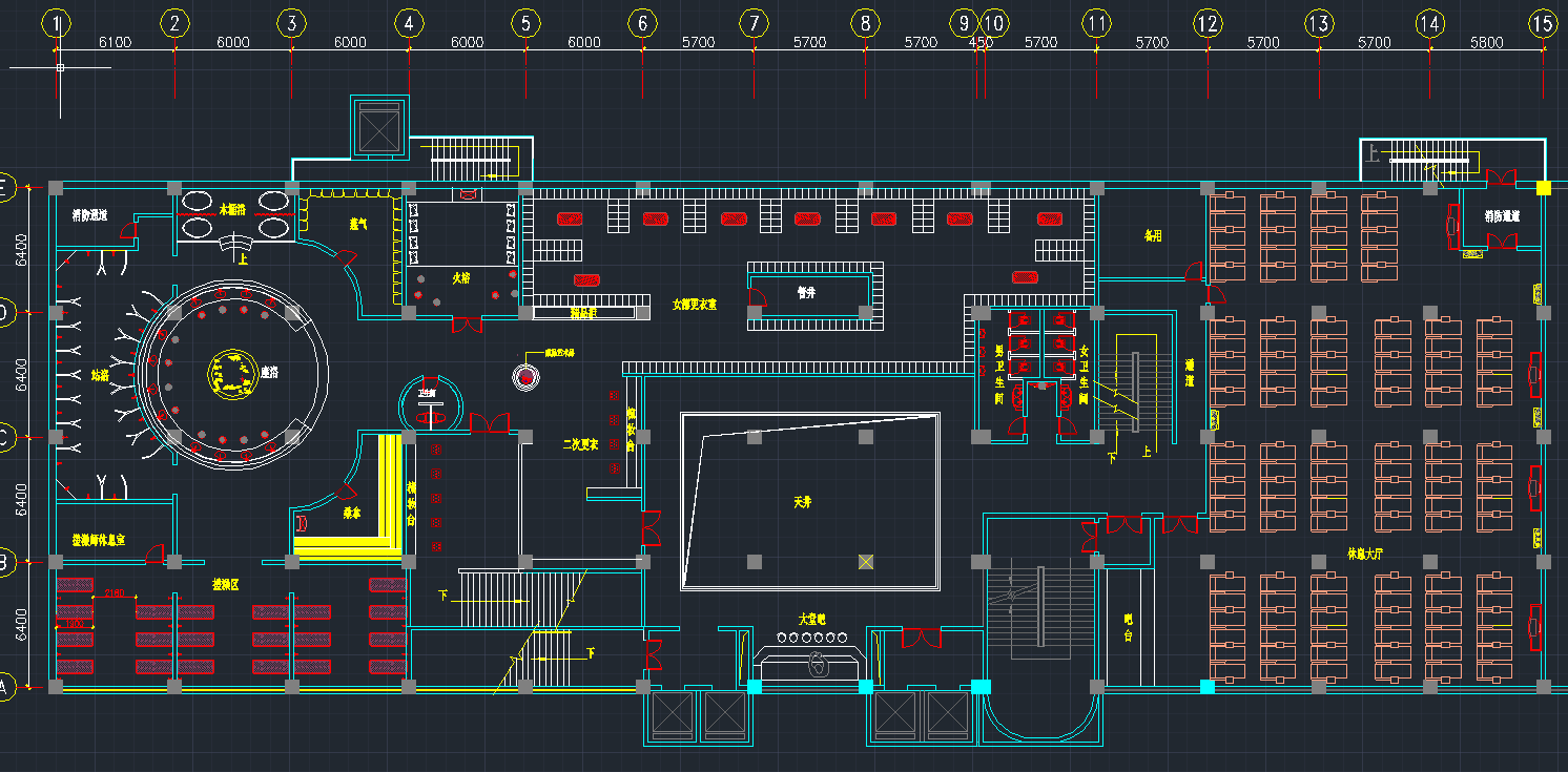 当前的位置:首页 > 室内CAD图纸 > cad > 工装图纸 > 酒店宾馆 > 酒店洗浴部二层装修图cad施工图下载、酒店洗浴部二层装修图dwg文件下载
