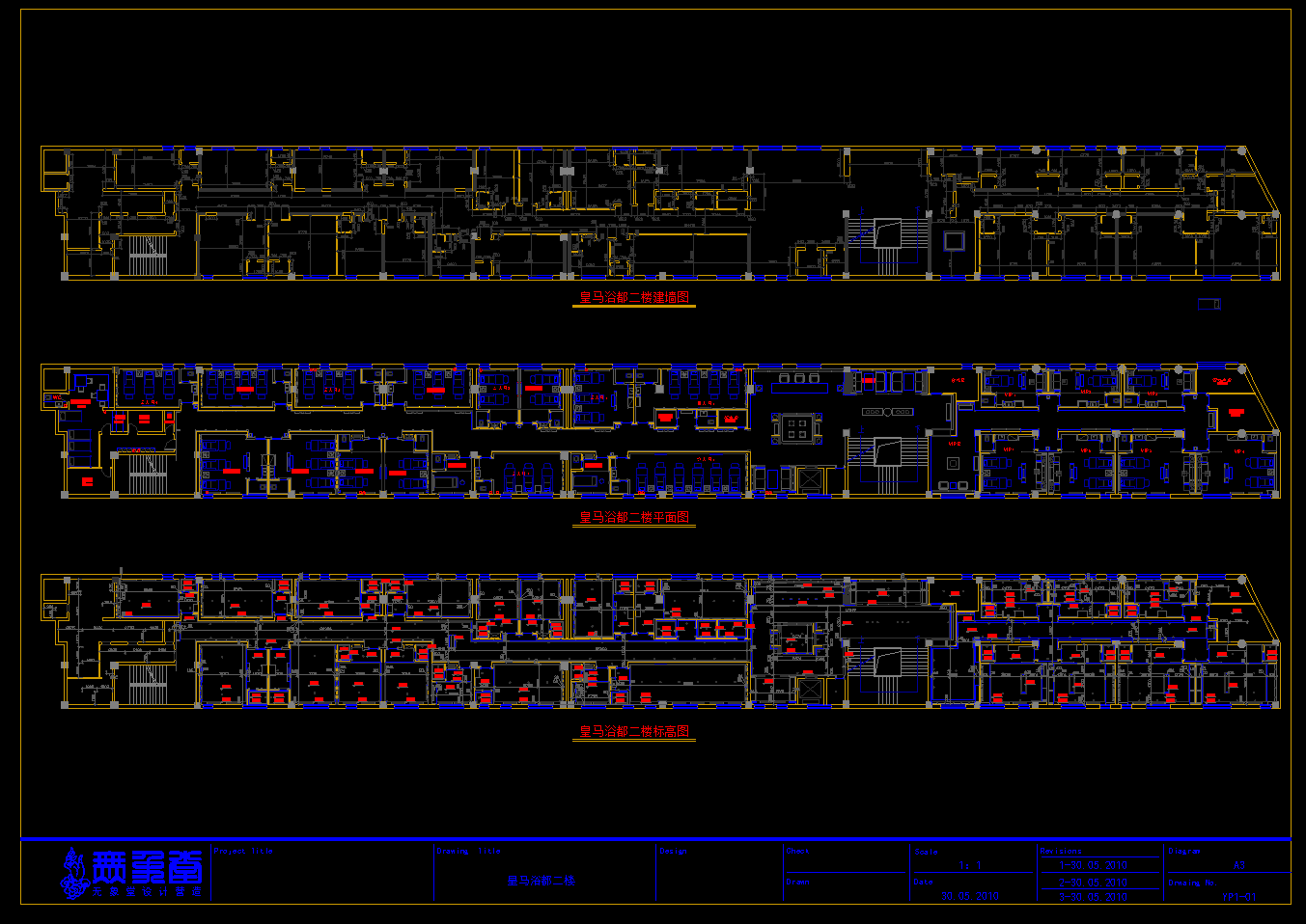皇浴都酒店CAD施工图,酒店CAD施工图纸下载内容简介:酒店含有三层立面图、顶面图以及布置图,空间设计合理,可作为参考学习的模板。