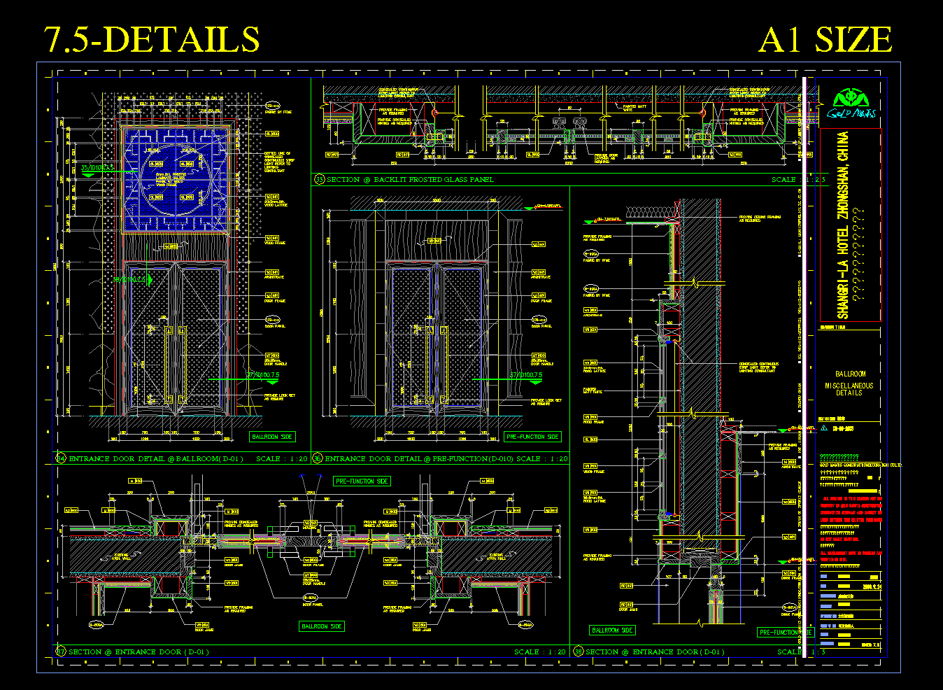 当前的位置:首页 > 室内CAD图纸 > cad > 工装图纸 > 酒店宾馆 > 中山香格里拉宴会厅装饰施工图,酒店会厅CAD施工图下载
