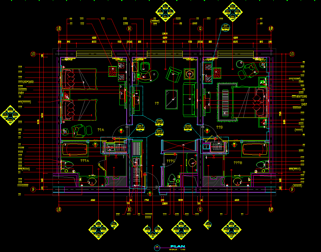 酒店豪华套房套平面cad施工图