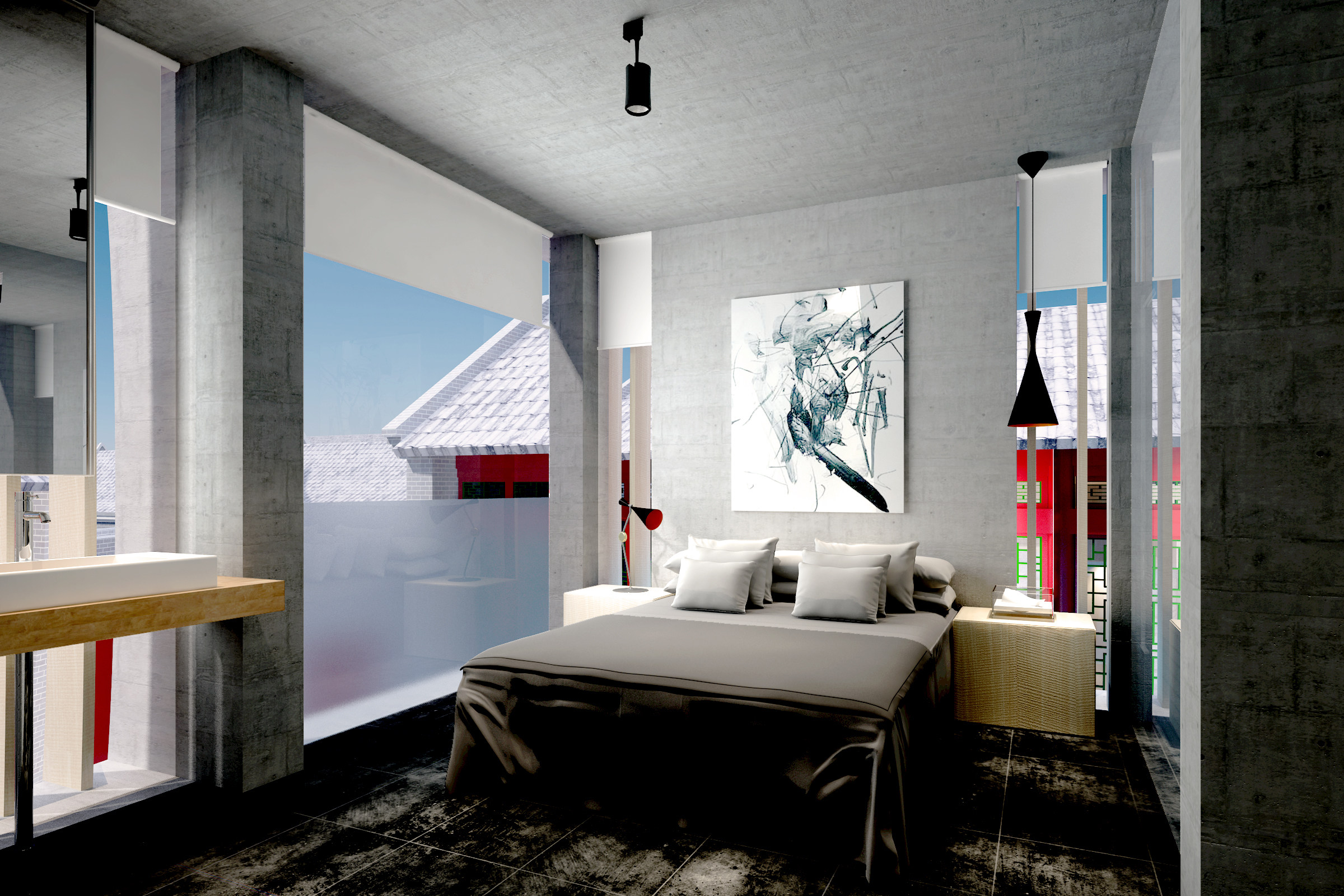 资料内容包括:全套施工图、概念方案、效果图、施工图、官方摄影、完工实景图、项目概括。设计师称在建筑室内设计和空间规划上采用了五行元素和阴阳之道的设计特色,试图融合传统中国文化和当代居住风格。高耸的屋梁和朱红色的大门内,粗粝的水泥墙面、灯笼式的吊灯、中式家具、工业风的铁质扶手、皮沙发等交错摆设。BBK35,中文名字也叫做“洞天”,每间房间每晚的价格在 80 至 90 美金。自对外营业的半年多以来,在 Airbnb 上收到了大部分非常正面的评价。其中,“设计感”、“有趣的胡同建筑”、“经营得好”这几个词最经常出现在访客们的评价里。空间设置合理规范,具有较高的参考价值,可作为参考学习的模板,供设计师、建筑师下载参考。