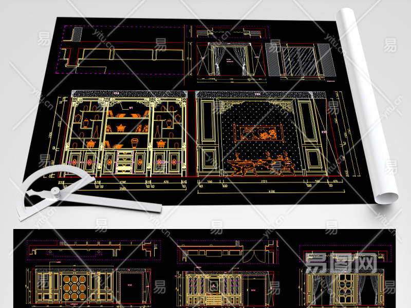 当前的位置:首页 > 室内CAD图纸 > cad > 家装图纸 > 名师作品 > 原创豪华中式护墙板背景墙CAD图库-版权可商用3D模型