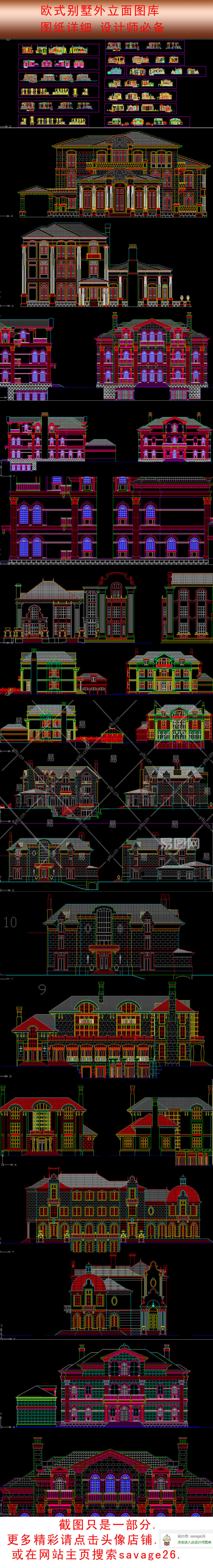 原创全套欧式别墅建筑cad收集图库-版权可商用3D模型