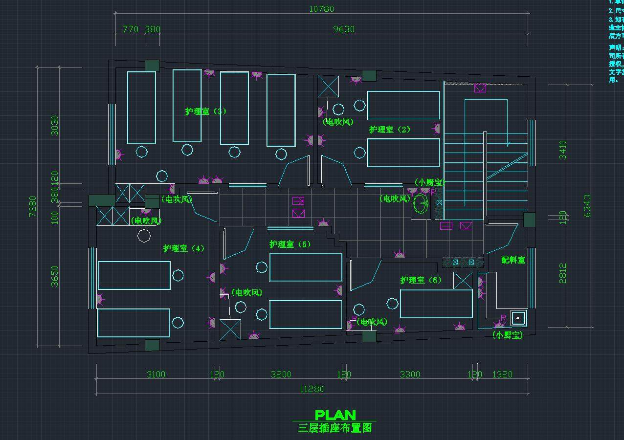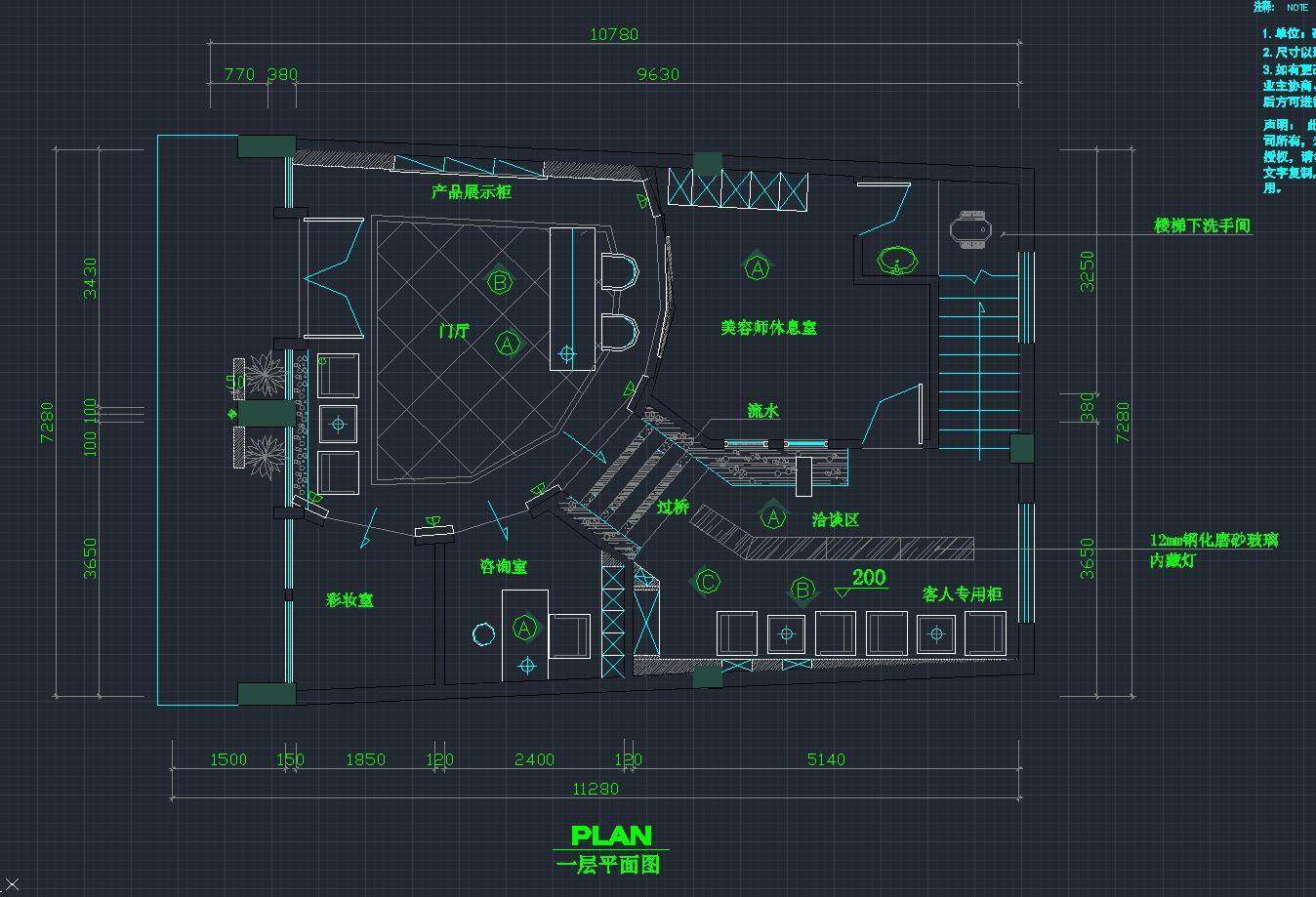 三层连锁美容院装修施工图,CAD平面施工图设计