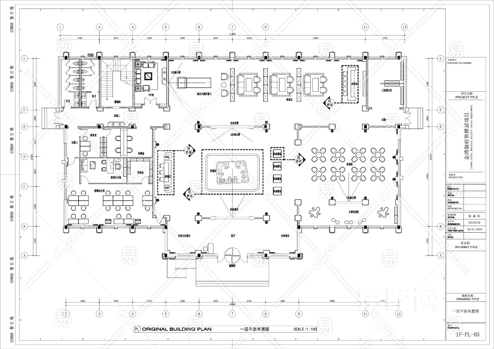 当前的位置:首页 > 室内CAD图纸 > cad > 商业空间 > 售楼中心 > 欧式简约风格售楼部CAD施工图
