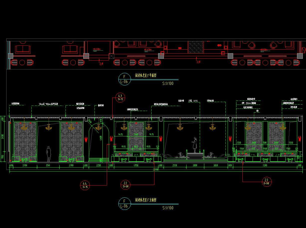 资料内容包括:全套施工图、书吧全套施工详图,大厅立面图、大厅平面图、阅读休息区立面图等。空间设置合理规范,具有较高的参考价值,可作为参考学习的模板,供设计师、建筑师下载参考。