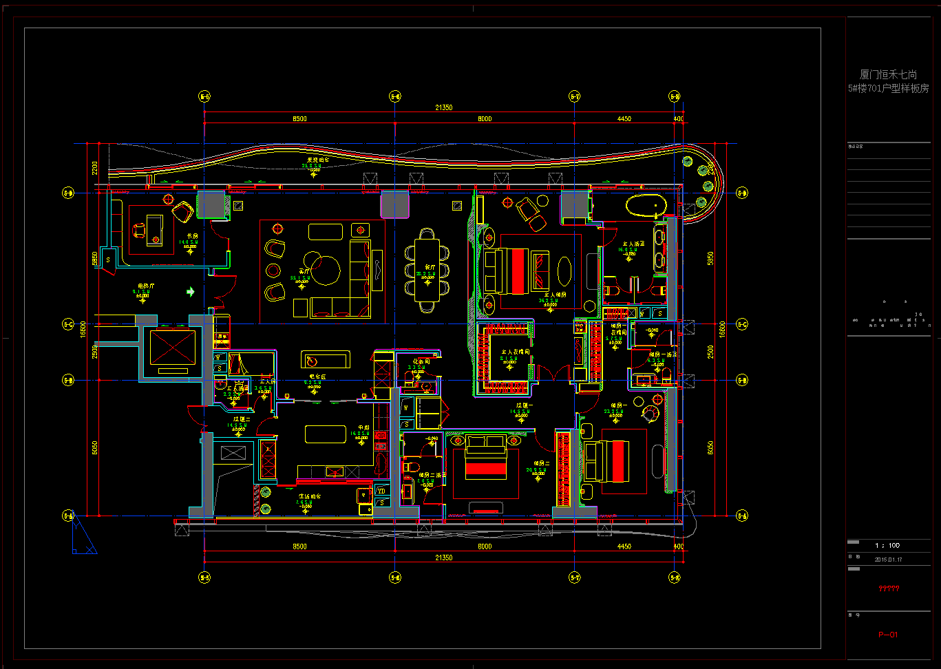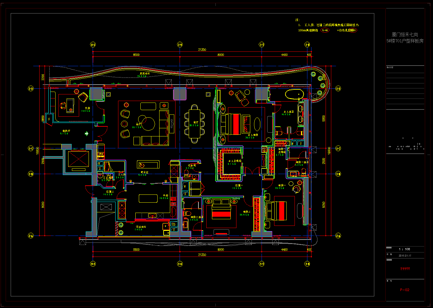 厦门恒禾701户型现代样板房施工图,样板房CAD施工图纸下载