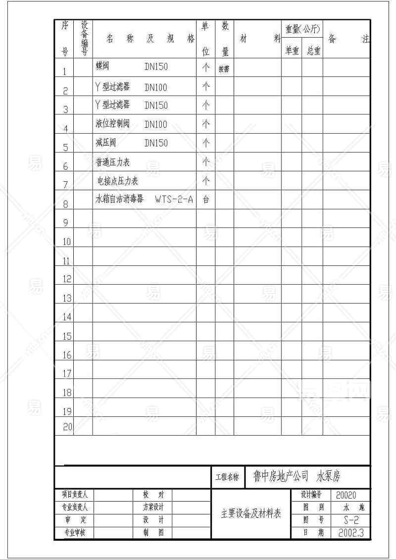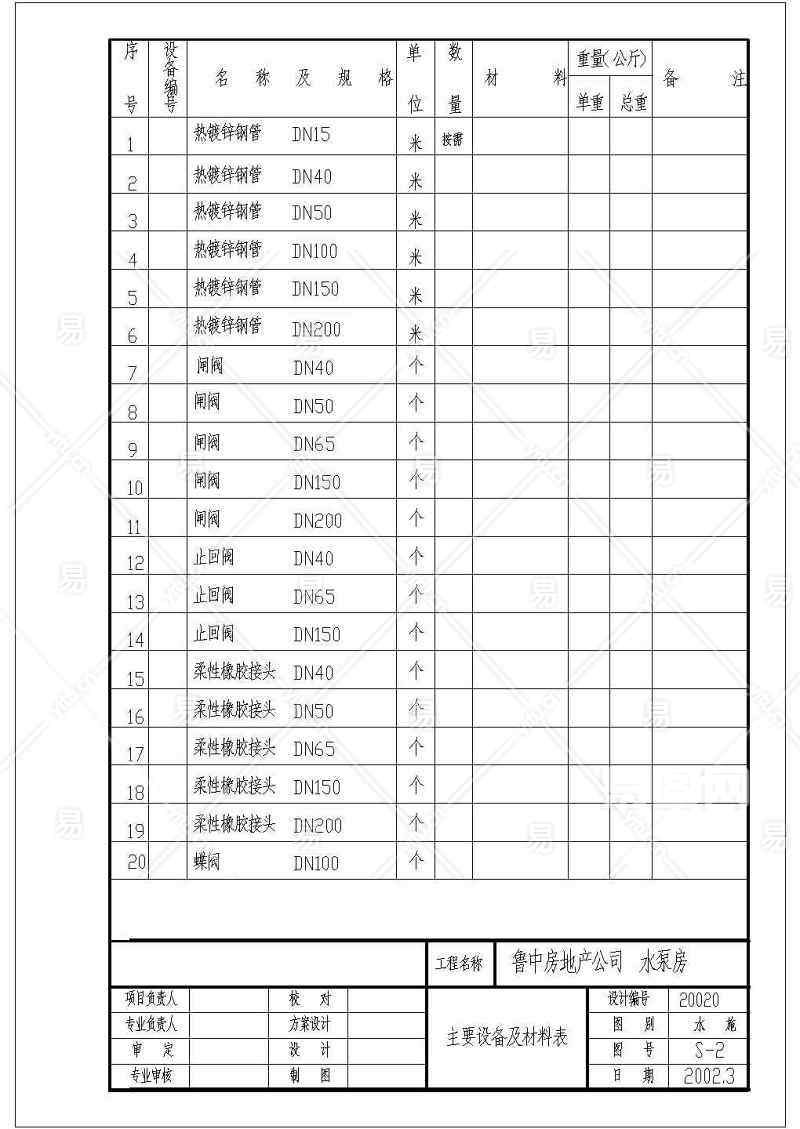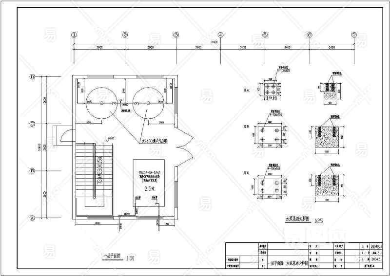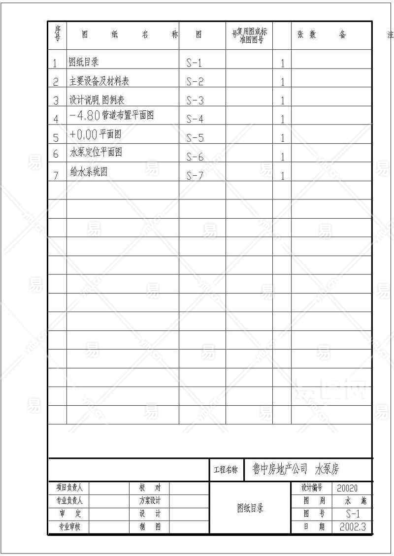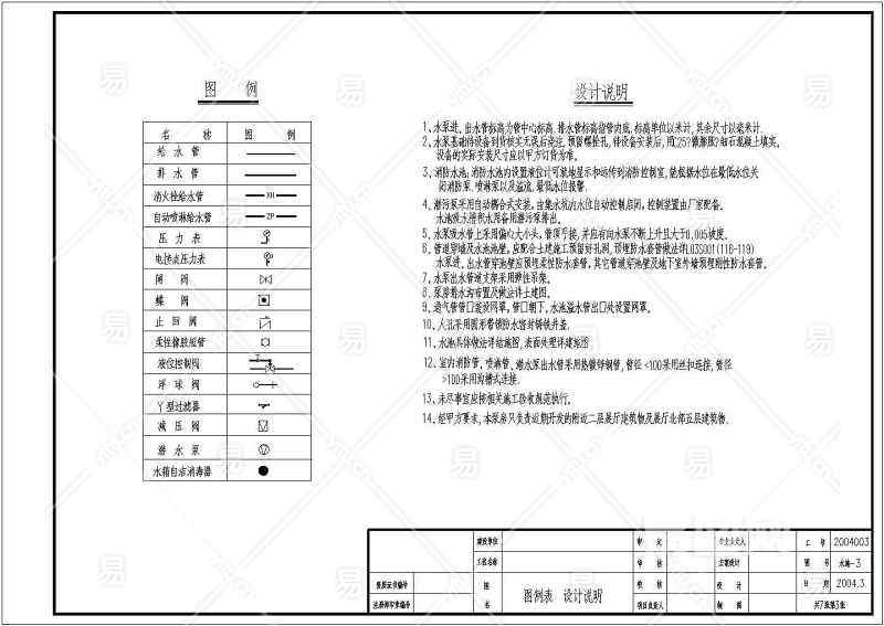 当前的位置:首页 > 室内CAD图纸 > cad > 机电设备 > 建筑给排水施工图 > 某地室外半地下水泵房大样设计施工图
