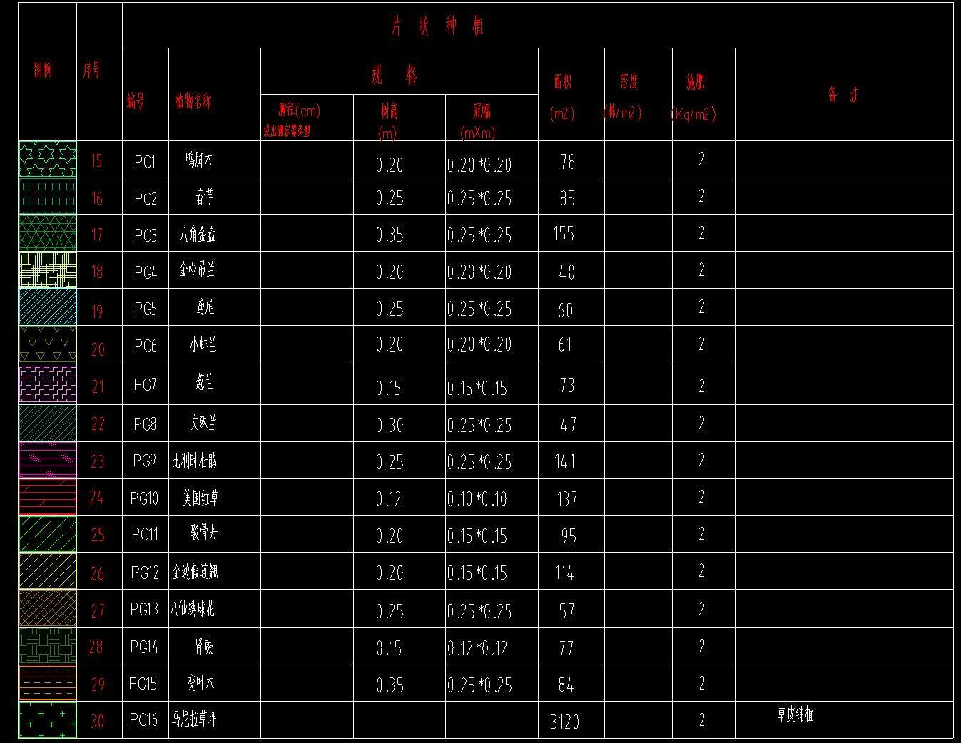 空间划分:成套公园绿化                                                                                图纸深度:施工图