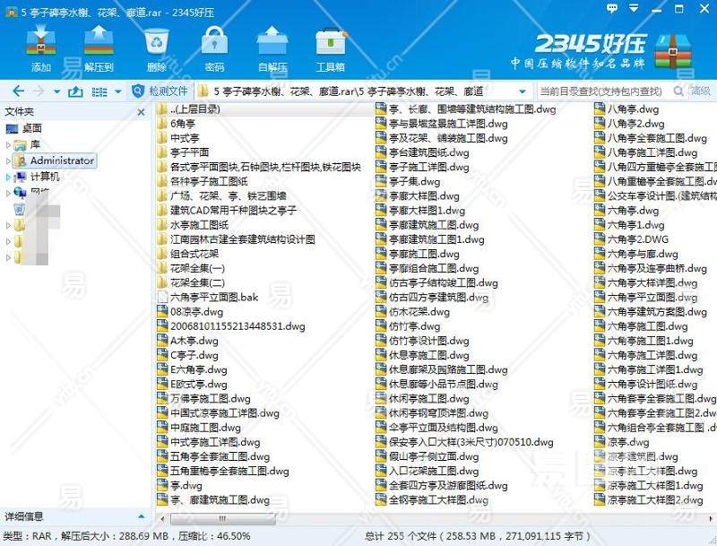 249套仿古建筑CAD图纸(含亭子碑亭水榭、花架、廊道CAD图纸134M)3D模型