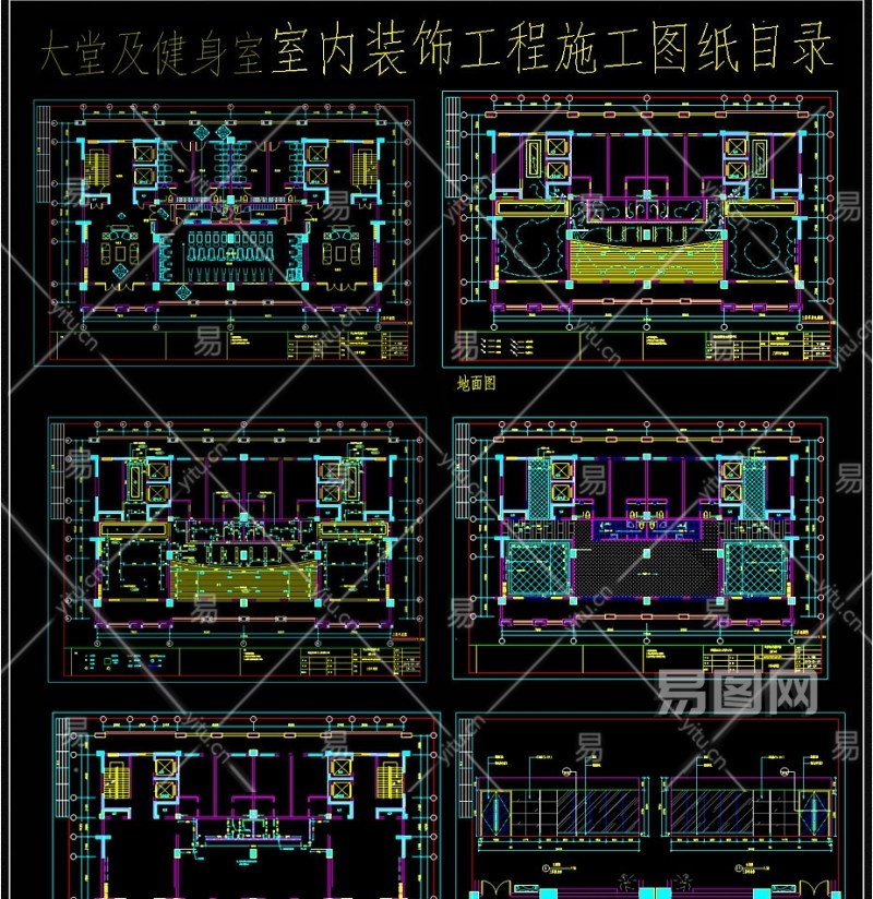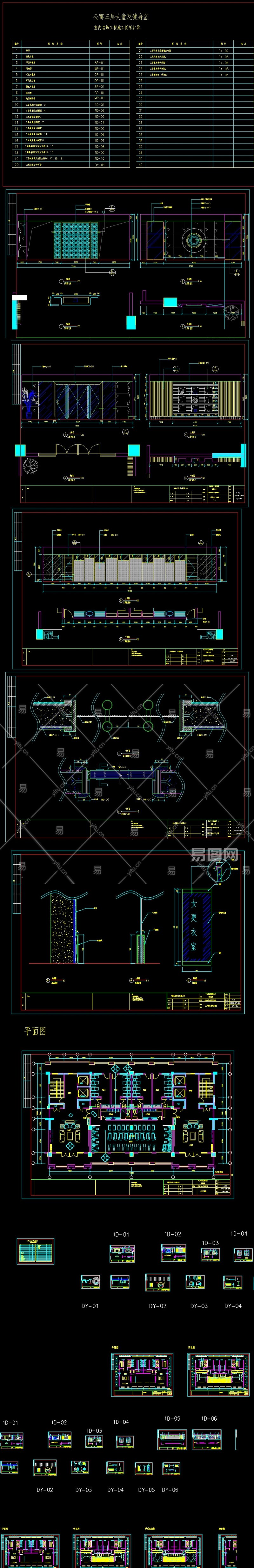 精品健身房cad全套施工图附目录3D模型