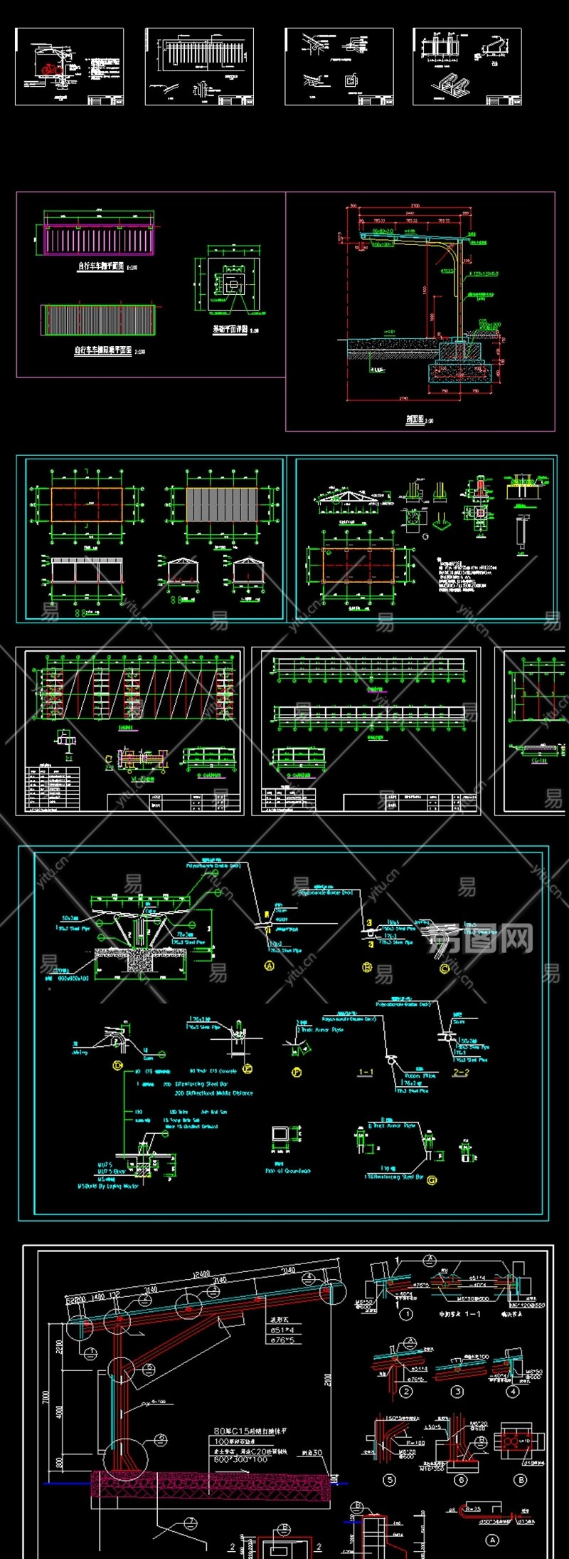 当前的位置:首页 > 室内CAD图纸 > cad > 建筑方案设计 > 综合建筑图纸 > 停车棚自行车棚遮阳棚结构CAD施工图3D模型