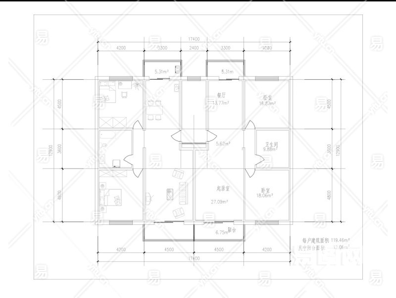 当前的位置:首页 > 室内CAD图纸 > cad > 机电设备 > 电力工程施工图 > CAD两室两厅的布局图