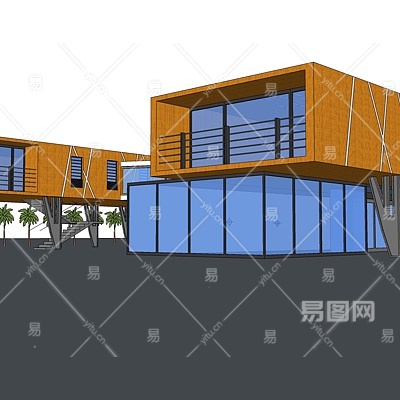 现代集装箱办公楼su模型