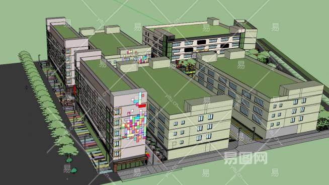 创意产业园区景观建筑SU模型下载_sketchup草图大师SKP模型