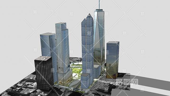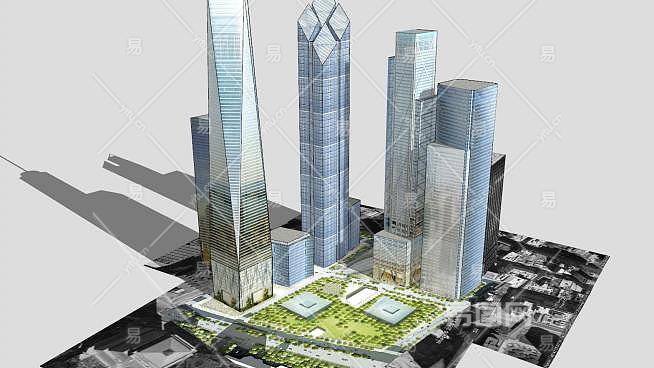 新世贸中心综合大楼建筑SU模型下载_sketchup草图大师SKP模型