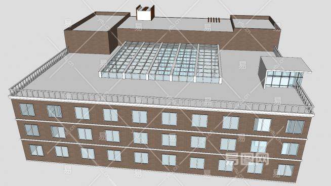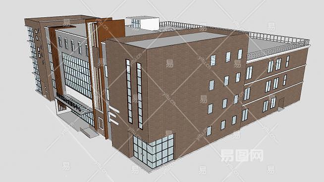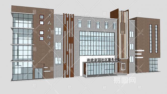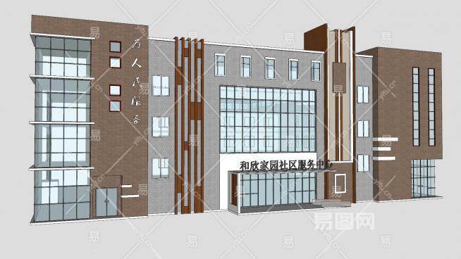 社区综合服务中心办公楼建筑SU模型下载_sketchup草图大师SKP模型