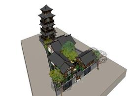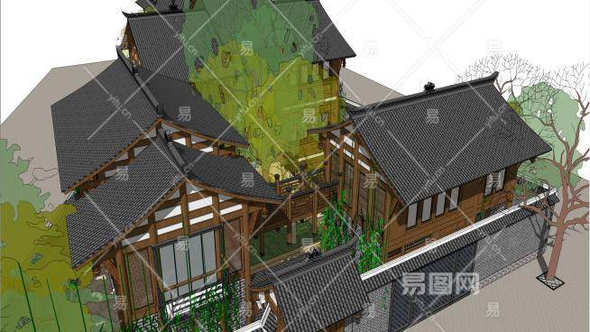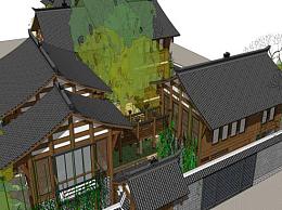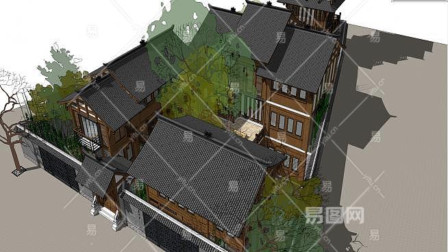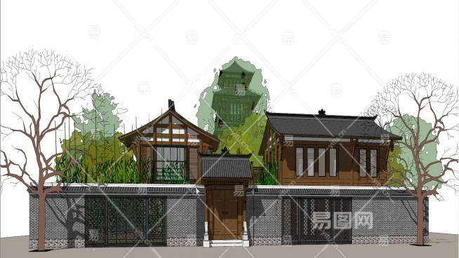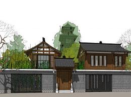 川西风格建筑仿古合院办公仿古SU模型下载_sketchup草图大师SKP模型