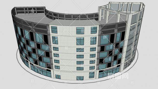 弧形办公楼建筑SU模型下载_sketchup草图大师SKP模型