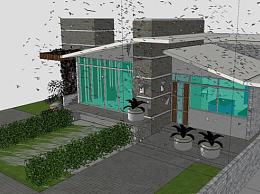现代建筑园林别墅SU模型下载_sketchup草图大师SKP模型