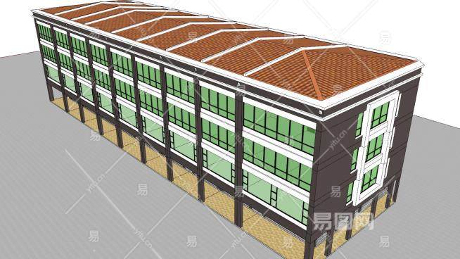 带门面的写字楼建筑SU模型下载_sketchup草图大师SKP模型