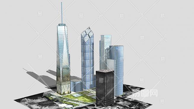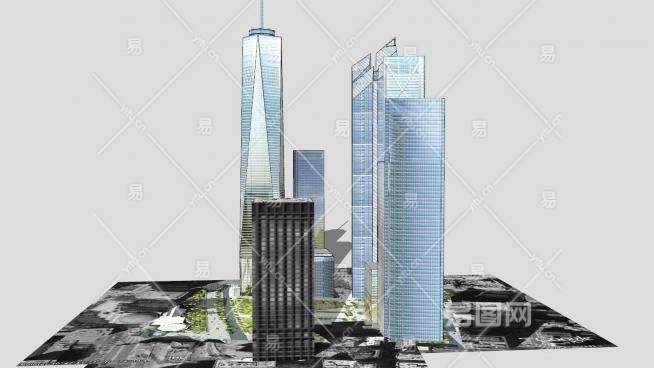 新世贸中心大厦建筑综合大楼SU模型下载_sketchup草图大师SKP模型
