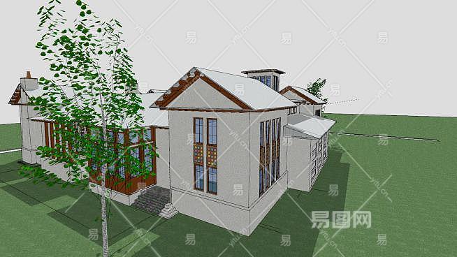 建筑事务所办公建筑SU模型下载_sketchup草图大师SKP模型