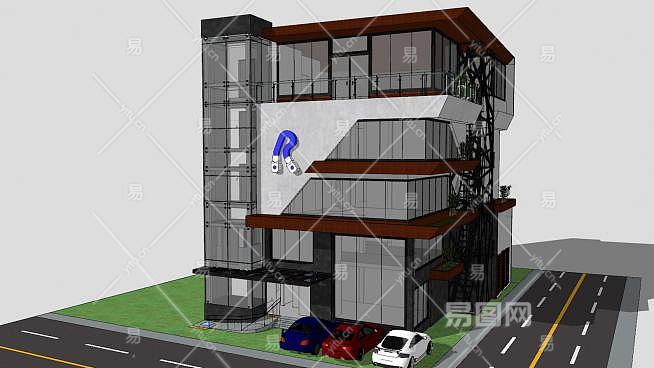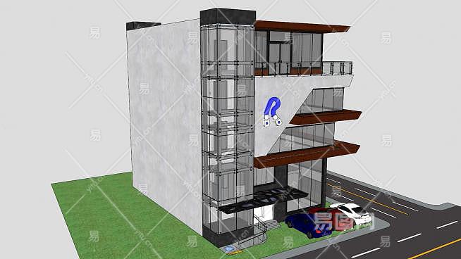 低层办公楼建筑SU模型下载_sketchup草图大师SKP模型