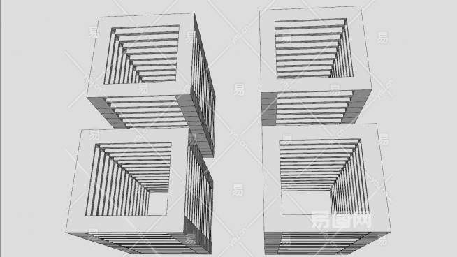 四栋办公大楼建筑SU模型下载_sketchup草图大师SKP模型