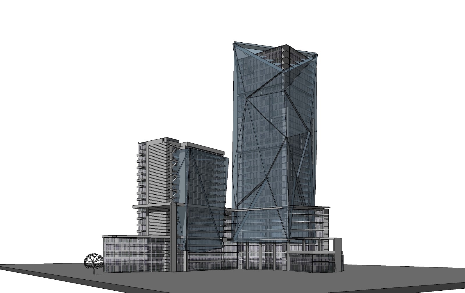 现代高层办公楼草图大师模型,高层办公楼sketchup模型免费下载