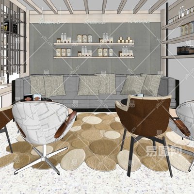 现代简约会客室su模型