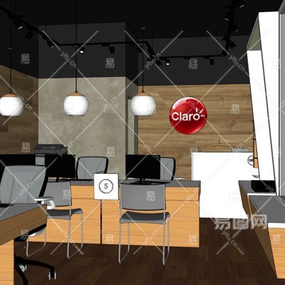 现代敞开式办公室su模型