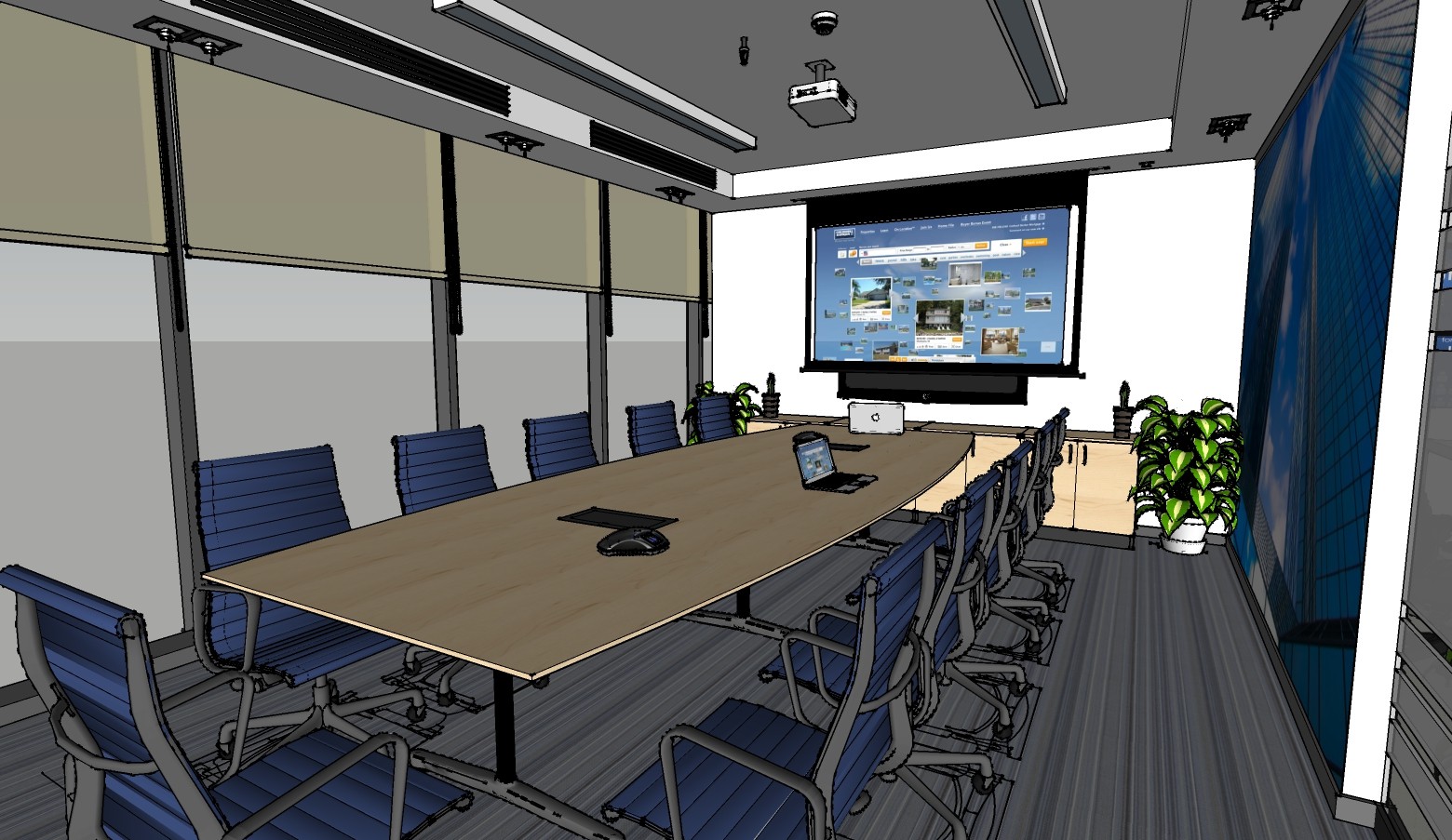 办公室室内表现草图,办公室sketchup模型下载