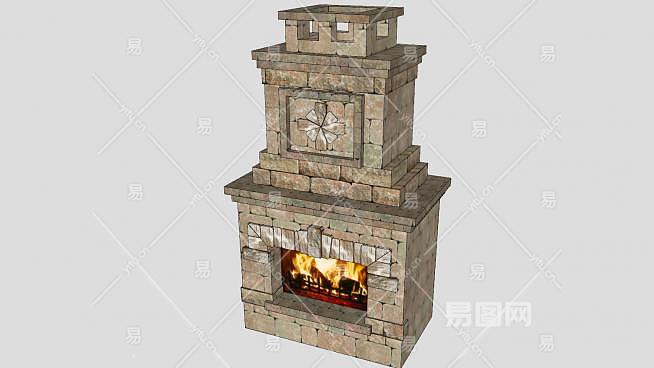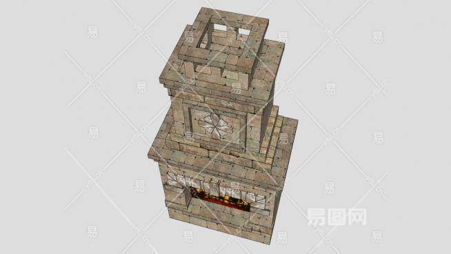 古典砖石壁炉SU模型下载_sketchup草图大师SKP模型