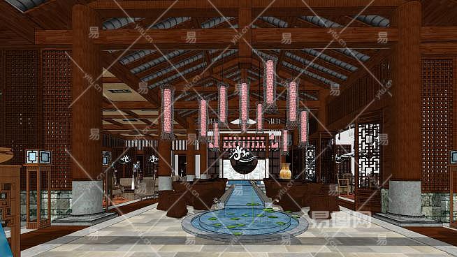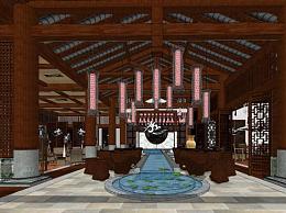 中式风格餐饮休闲会所室内SU模型下载_sketchup草图大师SKP模型
