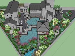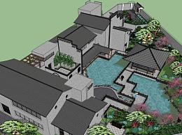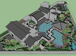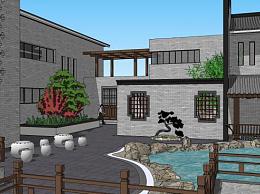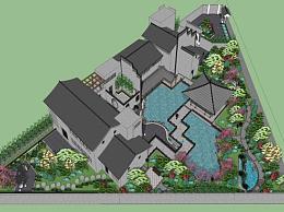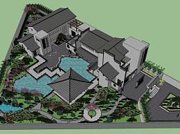 中式会所建筑景观SU模型下载_sketchup草图大师SKP模型