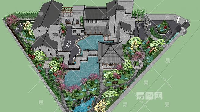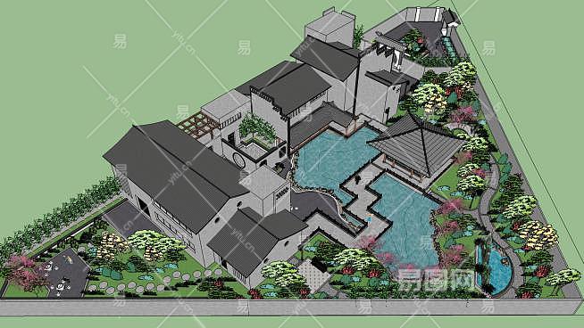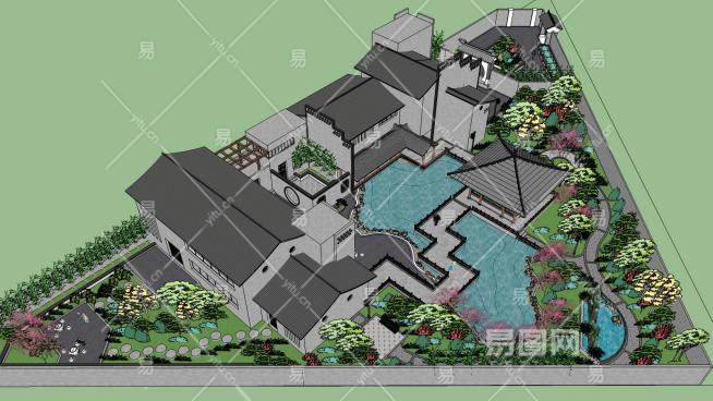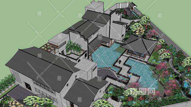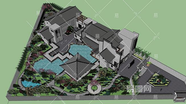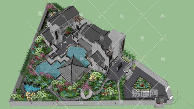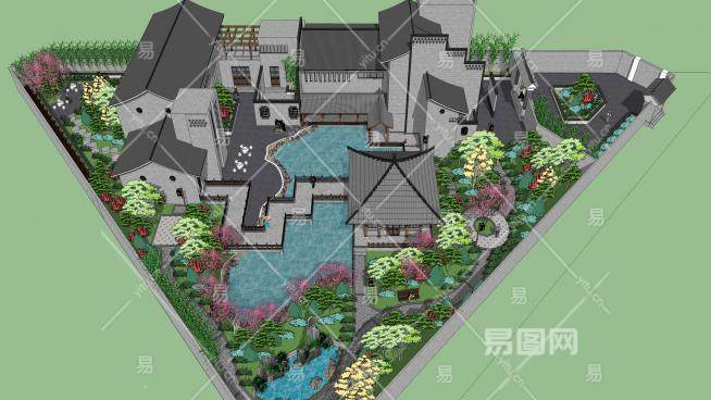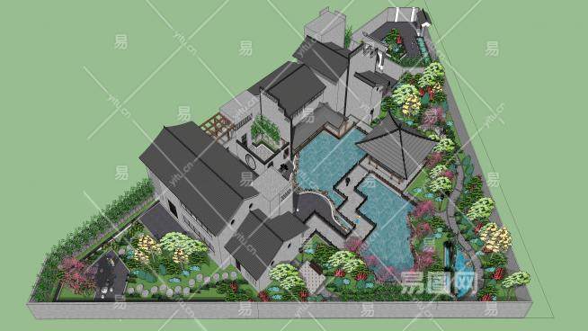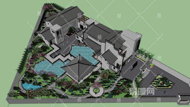 这是中式会所建筑景观SU模型,中式建筑即中国传统建筑,其形成和发展具有悠久的历史。由于幅员辽阔,各处的气候,文,质等条件各不相同,而形成了中国各具特色的建筑风格。中式会所建筑景观SU模型下载_sketchup图大师SKP模型