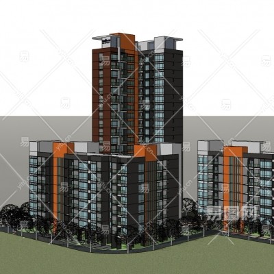 现代多层公寓楼su模型