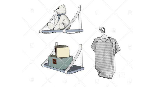 壁挂置物架摆件SU模型下载_sketchup草图大师SKP模型