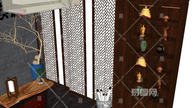 这是古董收藏品SU模型,玄关源于中国,是中国道教修炼的特有名词,最早出自道德经的:玄之又玄,众妙之门。 指道教内炼中的一个突破关口,道教内炼首先突破方能进入正式,后来用在室内建筑名称上,意指通过此过道才算进入正室,玄关之意由此而来。古董收藏品SU模型下载_sketchup图大师SKP模型
