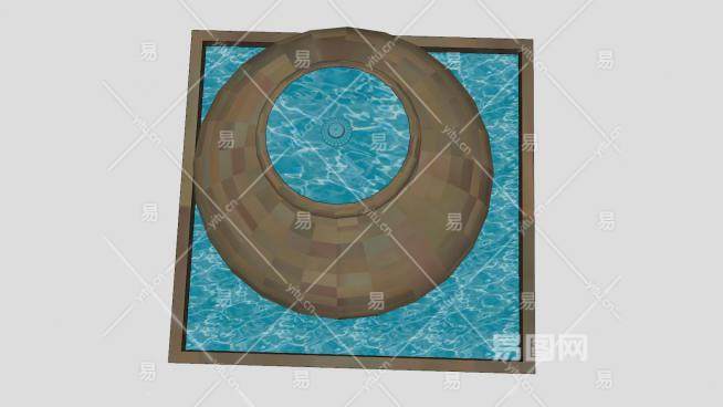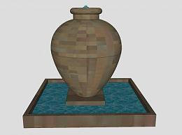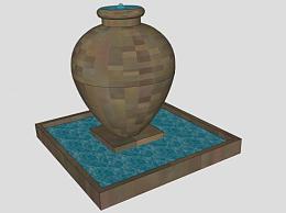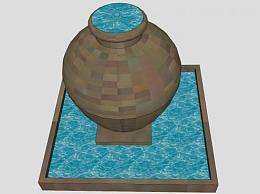 椭圆形石瓮流水喷泉SU模型下载_sketchup草图大师SKP模型