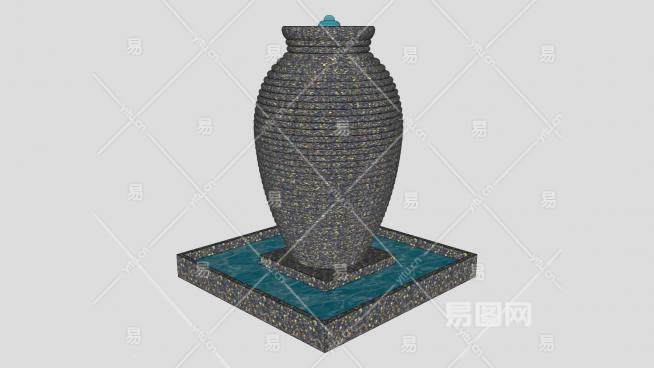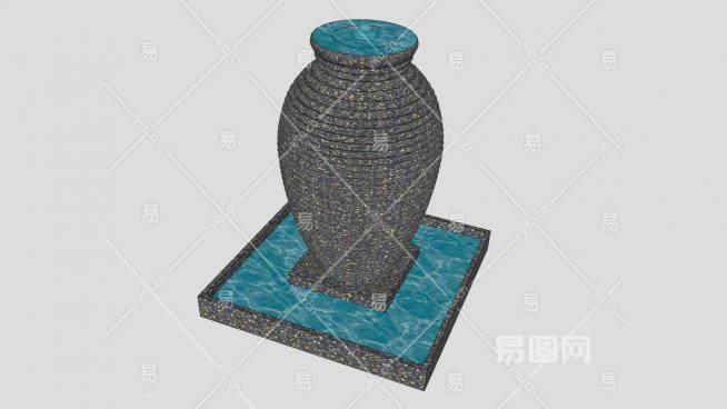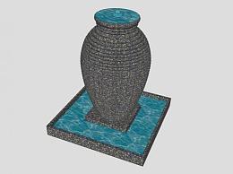 陶工陶罐外观流水喷泉SU模型下载_sketchup草图大师SKP模型