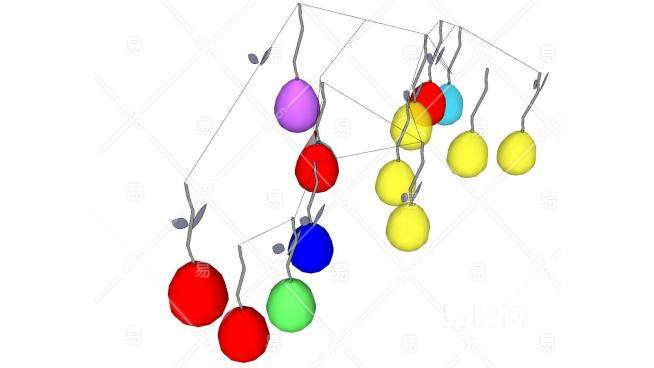 悬挂彩色气球壁式装饰SU模型下载_sketchup草图大师SKP模型