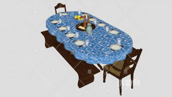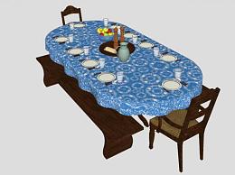 家庭餐桌桌台布SU模型下载_sketchup草图大师SKP模型