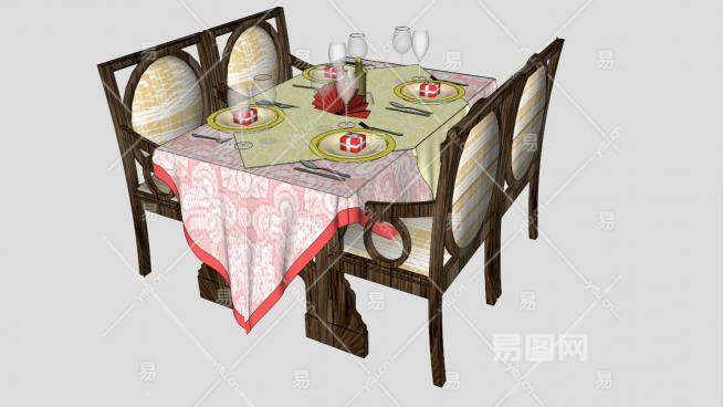 装饰桌台布SU模型下载_sketchup草图大师SKP模型