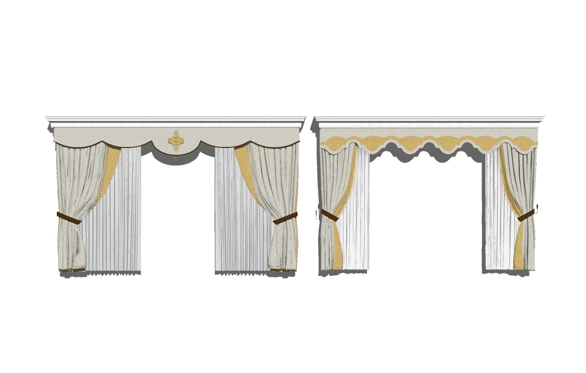 欧式布艺窗帘草图大师模型,布艺窗帘sketchup模型下载